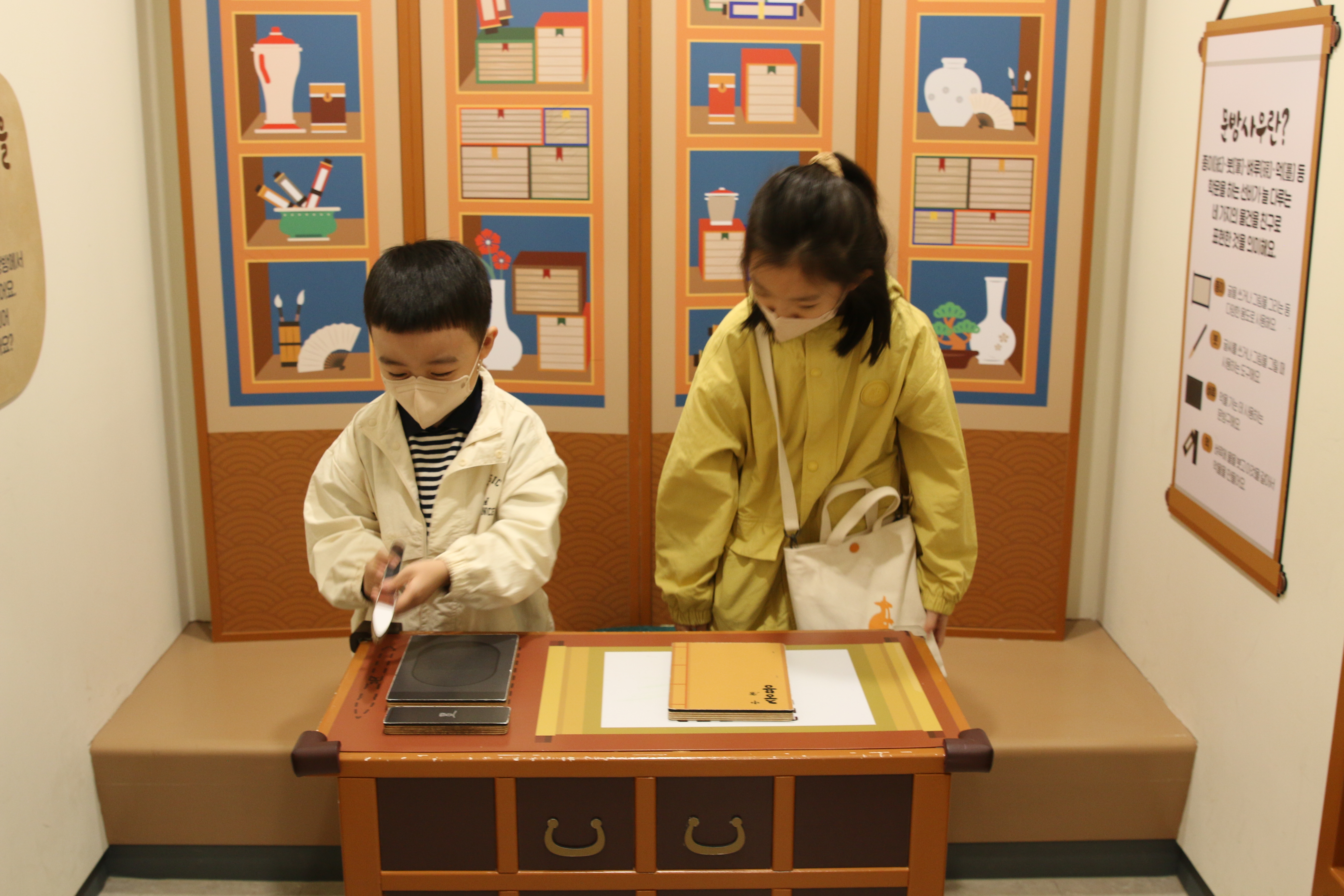 문방사우도 배워보았네요. 자석으로 되어있어서 가지고 놀고 다시 정리도 하고-