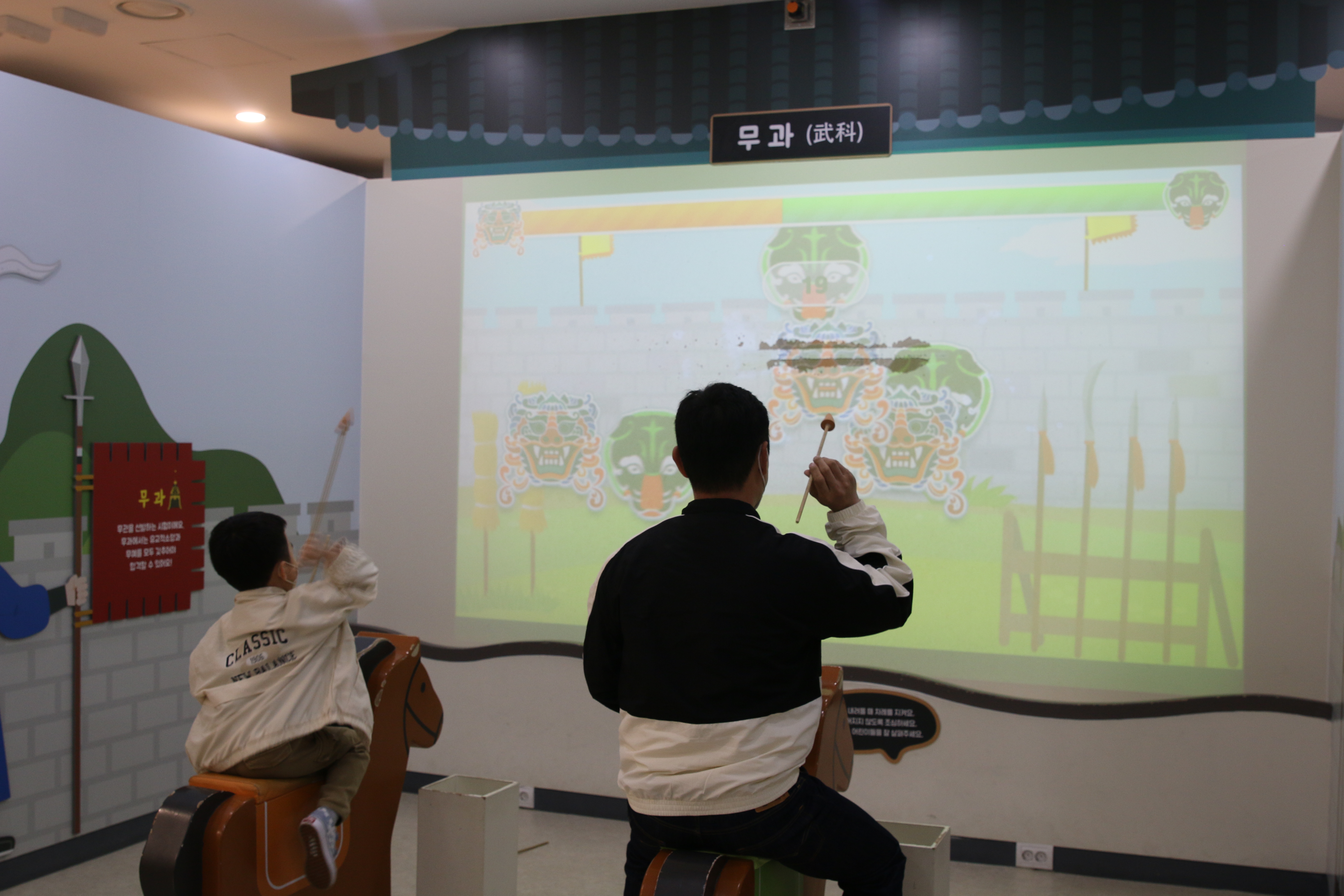 아이들이 제일 좋아했던 무과 활쏘기입니다. 아빠와 말을 타고 열심히 활쏘기를 했네요.