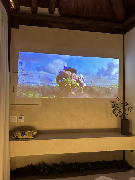 방에는 또 빔이 따로 설치되어 있어서 다 함께 영화 한 편 보면서 잠들었던 곳