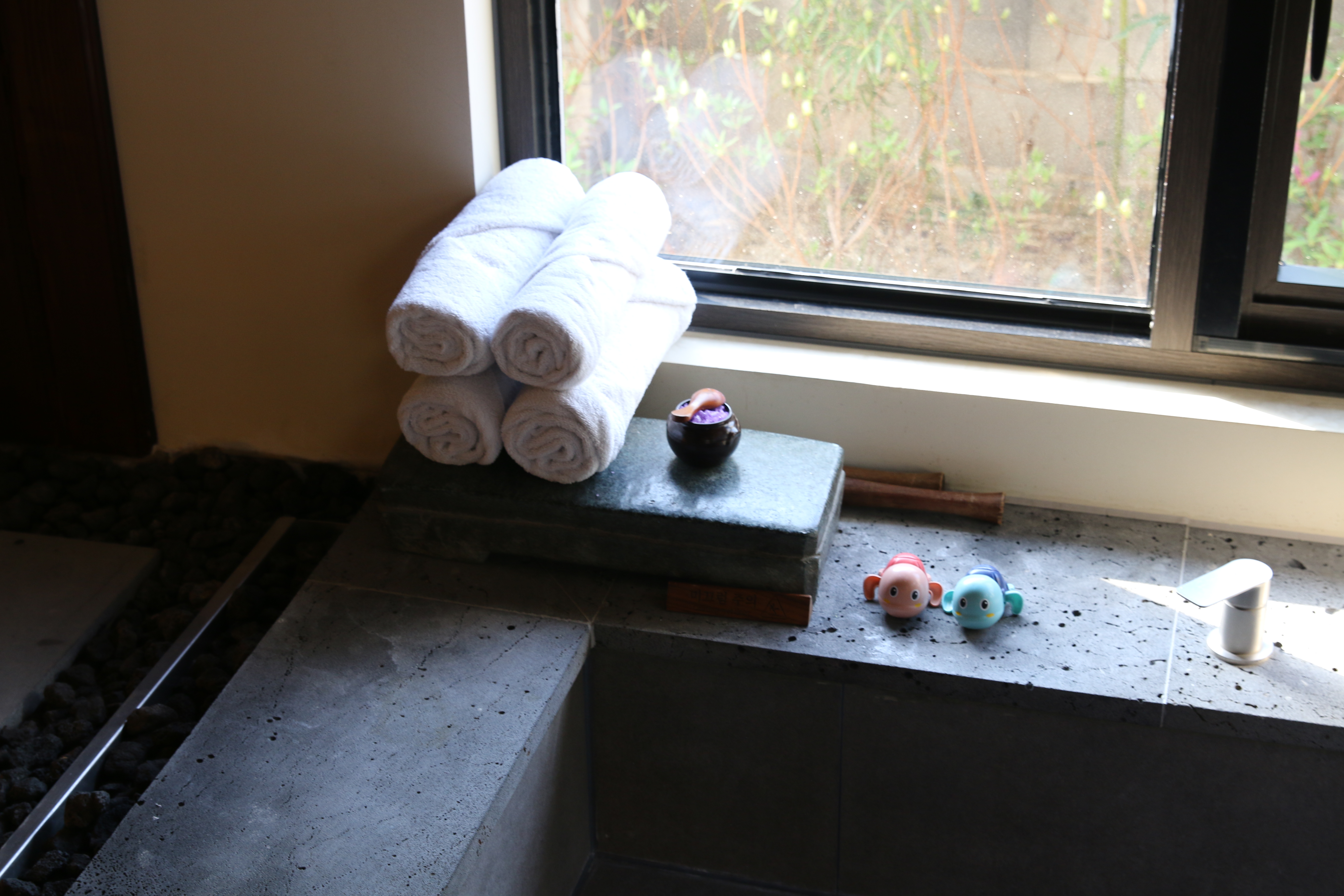 자쿠지에서 사용할 입욕제와 장수건들