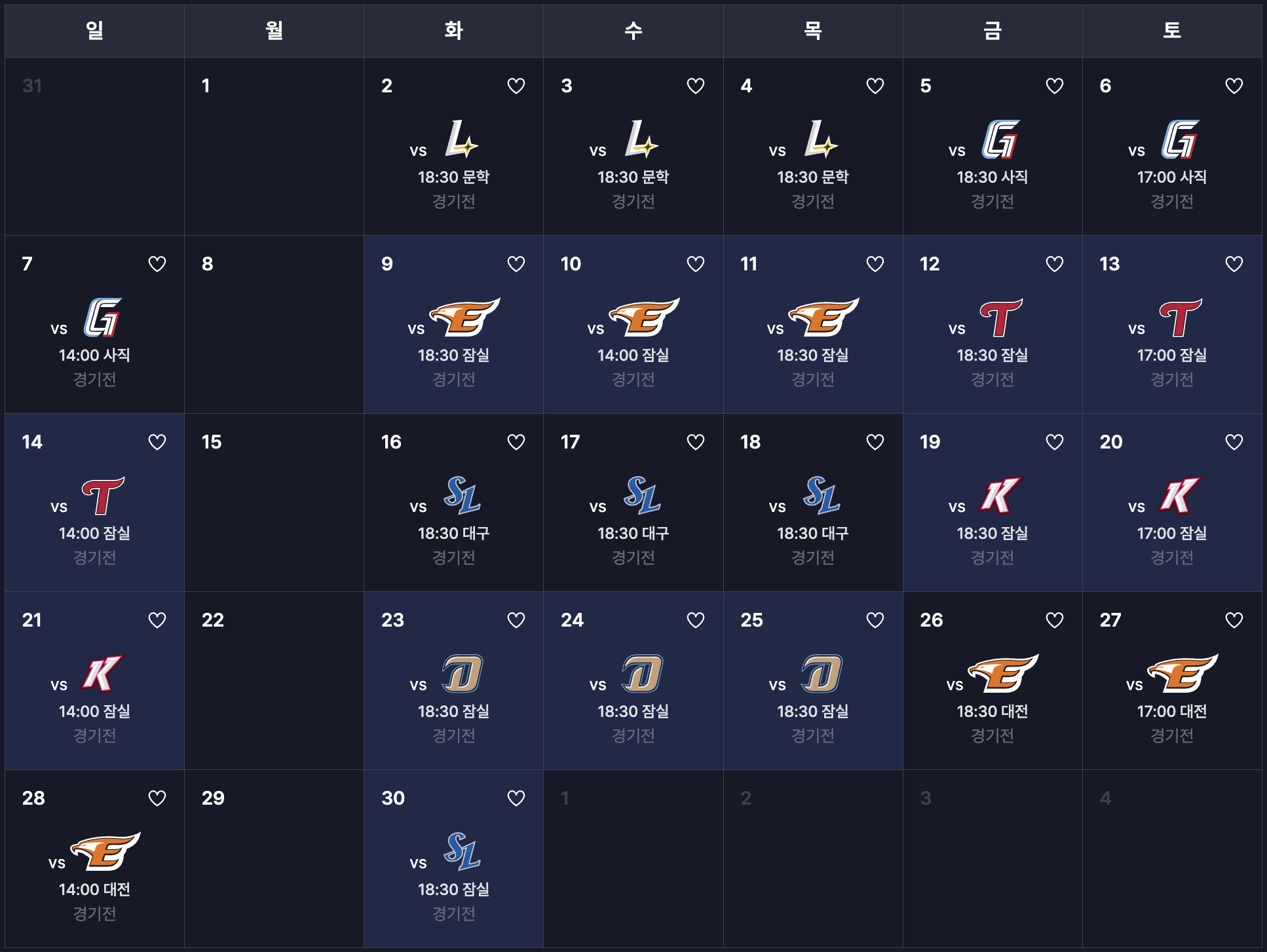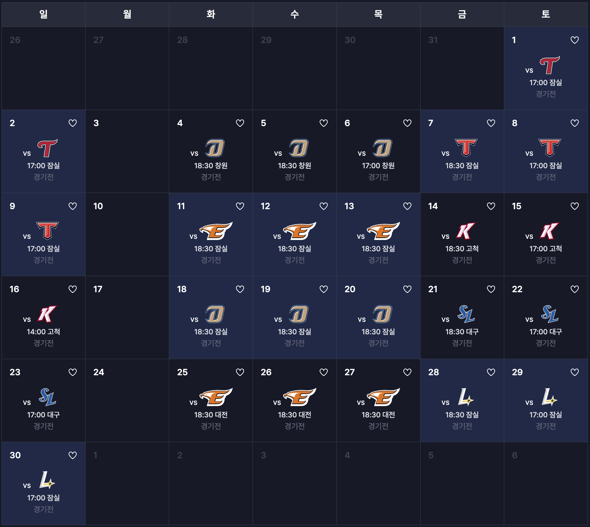 • 개막전을 제외한 모든 경기는 3연전으로 편성됩니다.